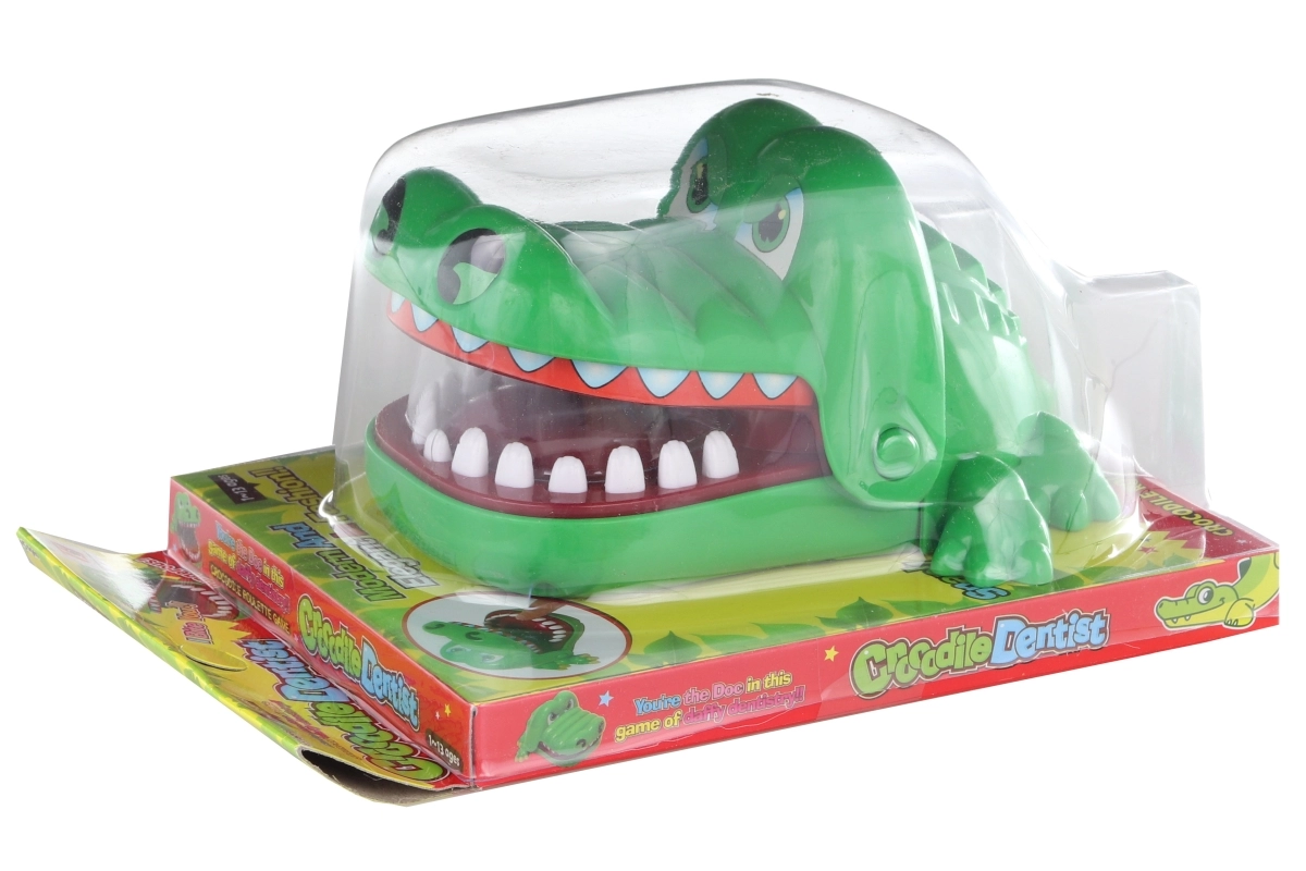 Obiteljska igra Krokodilski zubi provjerava brze reflekse i zapažanje. Krokodil otvori ralje, a igrači redom pritišću pojedine zube – u nasumičnom trenutku ralje se zaklope! Jednostavna pravila, napetost pri svakom potezu i brze runde čine je izvrsnim izborom za djecu od 3 godine naviše.