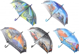 Uživajte u pouzdanoj zaštiti od kiše s kišobranom koji osvaja atraktivnim dizajnom s autima i motorima. Zahvaljujući automatskom (sklopivom) mehanizmu otvarate ga jednim pritiskom, što ćete cijeniti pri iznenadnim pljuskovima i na putu u školu ili na posao.