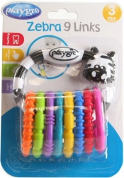 Igračka Playgro Zebra s prstenovima nudi osam šarenih kopči koje se mogu lako pričvrstiti na razna mjesta, podržava razvoj osjetila i fine motorike kod djece već od tri mjeseca starosti.