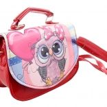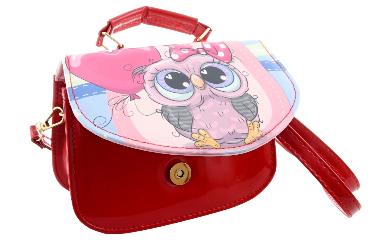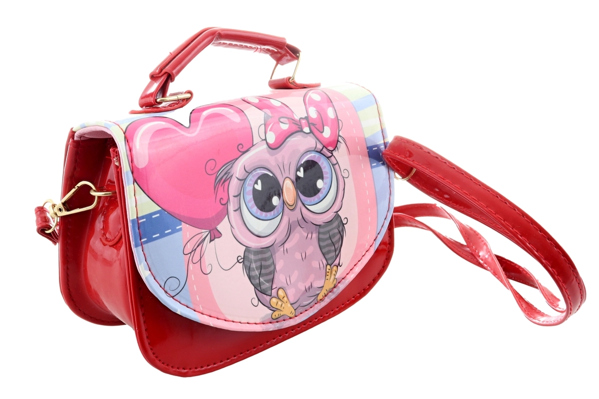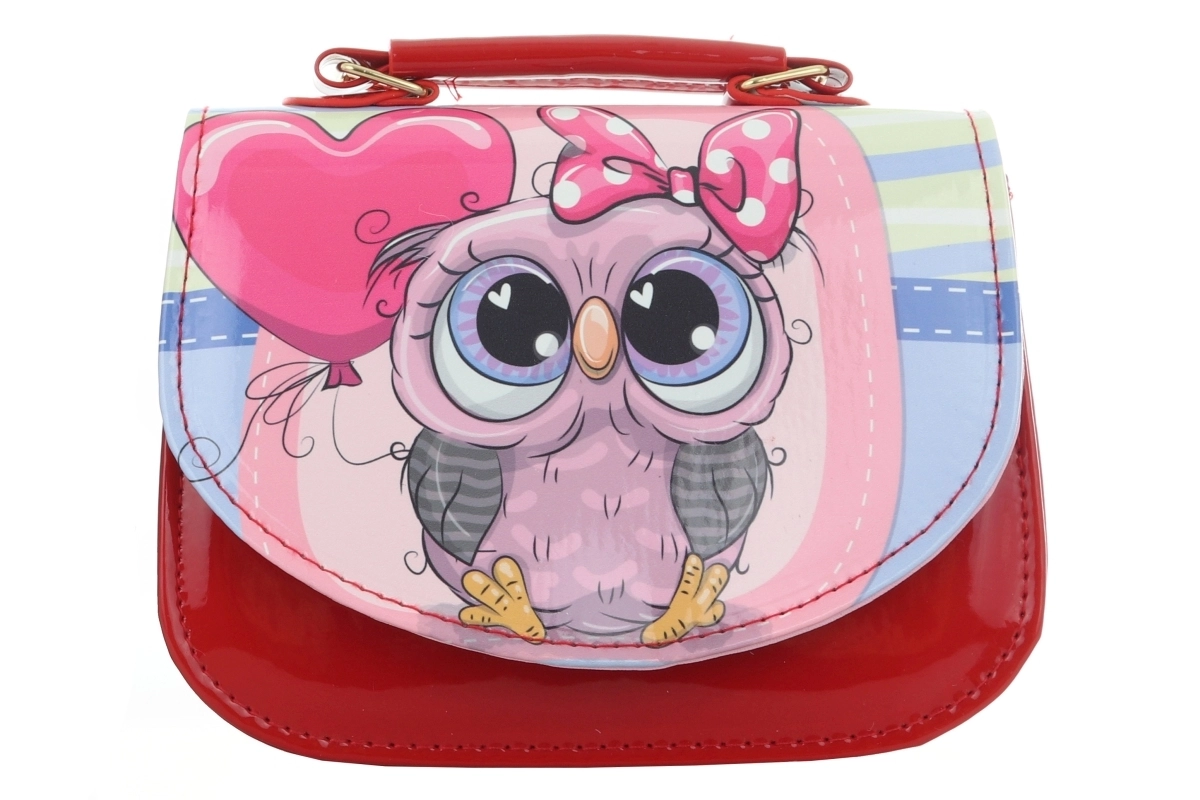 Ova elegantna mala torbica u crvenoj boji ističe se slatkim motivom soviće s mašnicom i srcima. Sjajna površina i zlatni detalji daju torbici stilski izgled, prikladan za šetnje, posjete i dječje proslave. Zahvaljujući kompaktnim dimenzijama, udobna je za nošenje i u nju stanu sve sitnice koje djeca žele imati uz sebe.