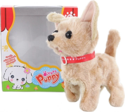 Ovaj plišani hodajući psić idealan je pratitelj za male ljubitelje životinja. Nakon uključivanja se simpatično kreće i ispušta zvukove lajanja, čime potiče maštu i interaktivnu igru. Zahvaljujući ugodnom materijalu i kompaktnim dimenzijama lako se prenosi i sprema.