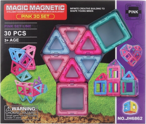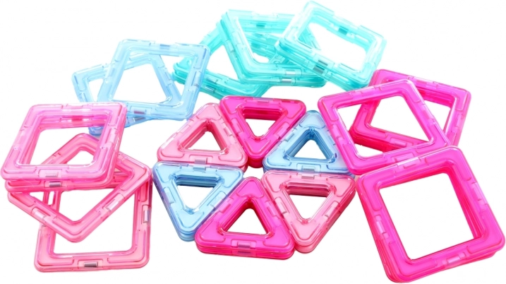 Uživajte u satima kreativne zabave s ovom magnetičkom građevnom igračkom. Set sadrži 30 dijelova koji se lako spajaju zahvaljujući magnetskim rubovima. Šareni dijelovi u ružičastoj, plavoj i tirkiznoj boji su prozirni i impresivno izgledaju pri sastavljanju raznih 3D objekata.