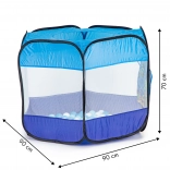 Lagan i stabilan pop-up šator za djecu s motivom podmorskog svijeta pretvara svaku sobu ili vrt u zabavno igralište. U kompletu je 100 šarenih loptica, prozračne mrežaste stranice, rolo ulaz i prozorić na krovu. Samo-razvijajuća konstrukcija omogućuje brzu montažu i jednostavno prenošenje.