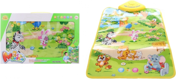 Interaktivna glazbena prostirka sa životinjama za djecu 3+. Proizvodi zvukove životinja i svira melodije. Dimenzije 40×67,5 cm, napajanje 3× AA. Sjajna zabava i učenje.