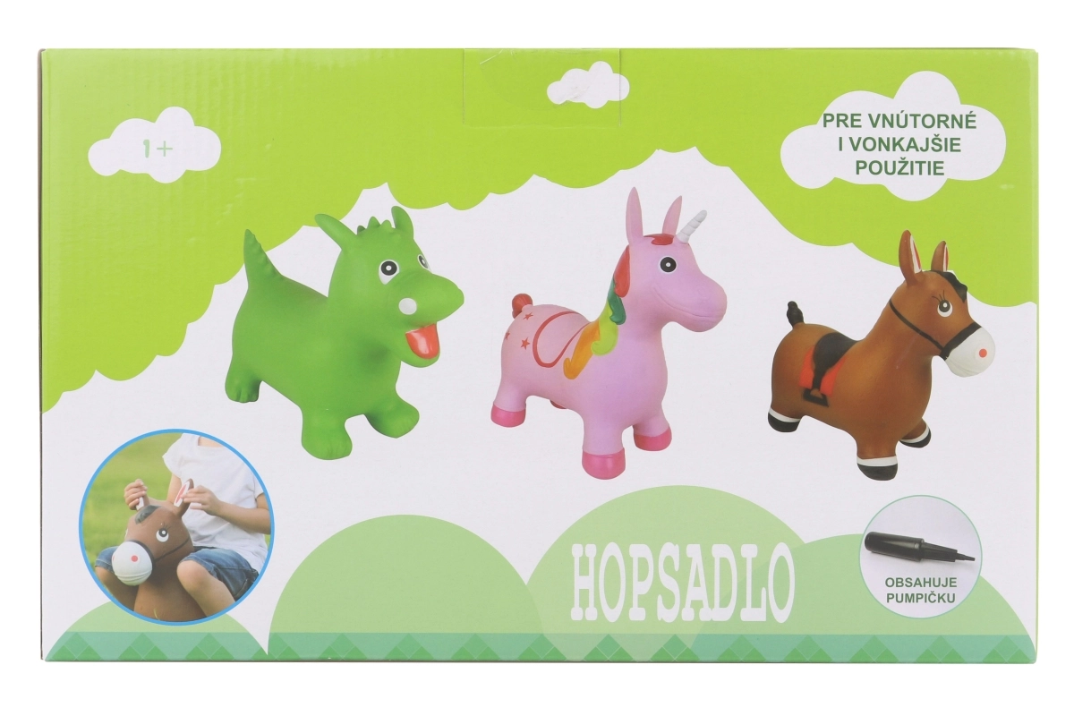 Zabavno napuhavajuće skakalo u obliku zmajića donosi djeci aktivno kretanje i radost pri svakom skoku. Zahvaljujući stabilnim nogama i udobnom sjedalu skakanje je sigurno i ugodno. U pakiranju je i pumpica za brzo napuhavanje. Sigurno skakanje, izdržljiv gumeni materijal, maksimalna nosivost 50 kg, sjedalo na visini cca 28 cm.
