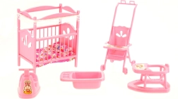 Kompletan set za dječju sobicu za lutke GLORIE razveselit će svakog malog skrbnika. U setu ćete pronaći krevetić s pokrivačem i jastučićem, kolica, hodalicu, noću posudu i kadicu – sve od izdržljive plastike i u veličinama idealnima za igru. Odlično za razvoj mašte i igre uloga. Pogodno od 3 godine.