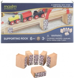 Mostni stupovi veličine približno 6,5 cm × 5,5 cm × 2,5 cm. Pakiranje sadrži 6 komada. Dob: 3+