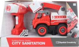 Sastavite vlastito interventno vozilo! Vatrogasno vozilo za sastavljanje vijcima razvija finu motoriku i logičko razmišljanje – djeca vozilo lako sastave pomoću priloženog odvijača ili bušilice. Iz dječje bušilice može se izvaditi motorić, umetnuti u vozilo i potom je dovoljno uzeti daljinski upravljač u ruke i krenuti u akciju.