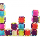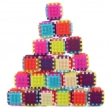 Vesele boje i lako spojive kocke nadahnjuju djecu na izradu tornjeva, kućica i maštovitih objekata.