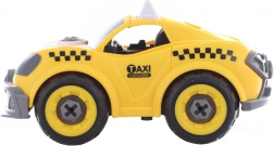 Sastavi, zavij i vozi! Ovaj kreativni set spaja vijčani model žutog taxija s mogućnošću pretvorbe u auto na daljinsko upravljanje. Djeca najprije sama sastave auto pomoću odvijača ili bušilice, a zatim izvade motor iz bušilice, umetnu ga u auto i uživaju u jednostavnom upravljanju naprijed i natrag.