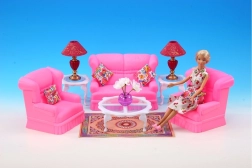 Stvorite za lutke elegantan kutak za opuštanje sa setom GLORIE. Zahvaljujući bogatoj opremi i realističnim dodacima djeca lako mogu uprizoriti svakodnevne situacije, osmišljavati interijer te razvijati socijalne vještine i maštu. Set je od izdržljive plastike i prikladan je za uobičajene veličine lutaka.