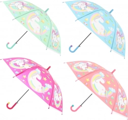 Uživajte u udobnosti i razigranom stilu s ovim kišobranom s jednorozima. Zahvaljujući mehanizmu na tipku, lako se i brzo otvara, pa ćete biti na suhom u trenu. Lagana konstrukcija idealna je za putovanja i školu.