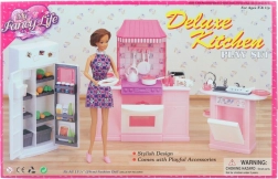 Pružite djeci realističnu igru kućanstva s luksuznim kuhinjskim setom GLORIE, koji nudi kompletnu kuhinjsku liniju s pećnicom, sudoper s perilicom posuđa i hladnjak s namirnicama. Dio seta je također bogata dodatna oprema za posuđe. Lutka nije uključena u pakiranje. Prikladno za djecu od 3 godine.