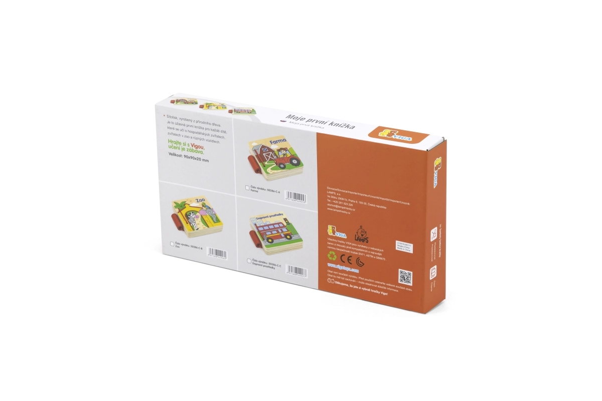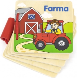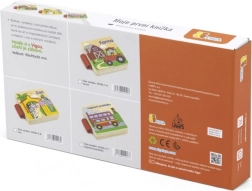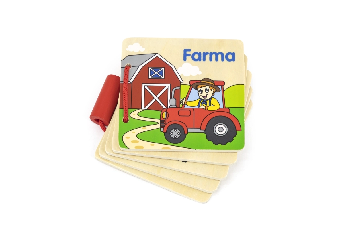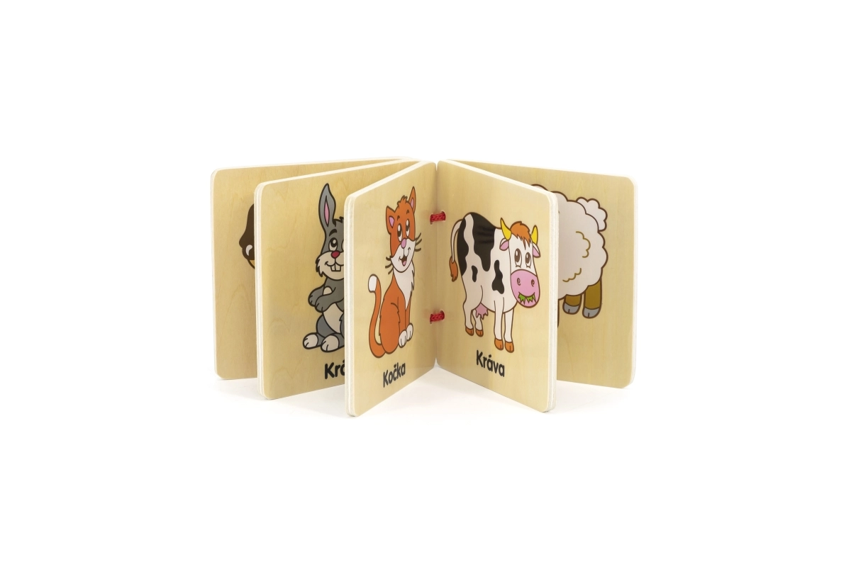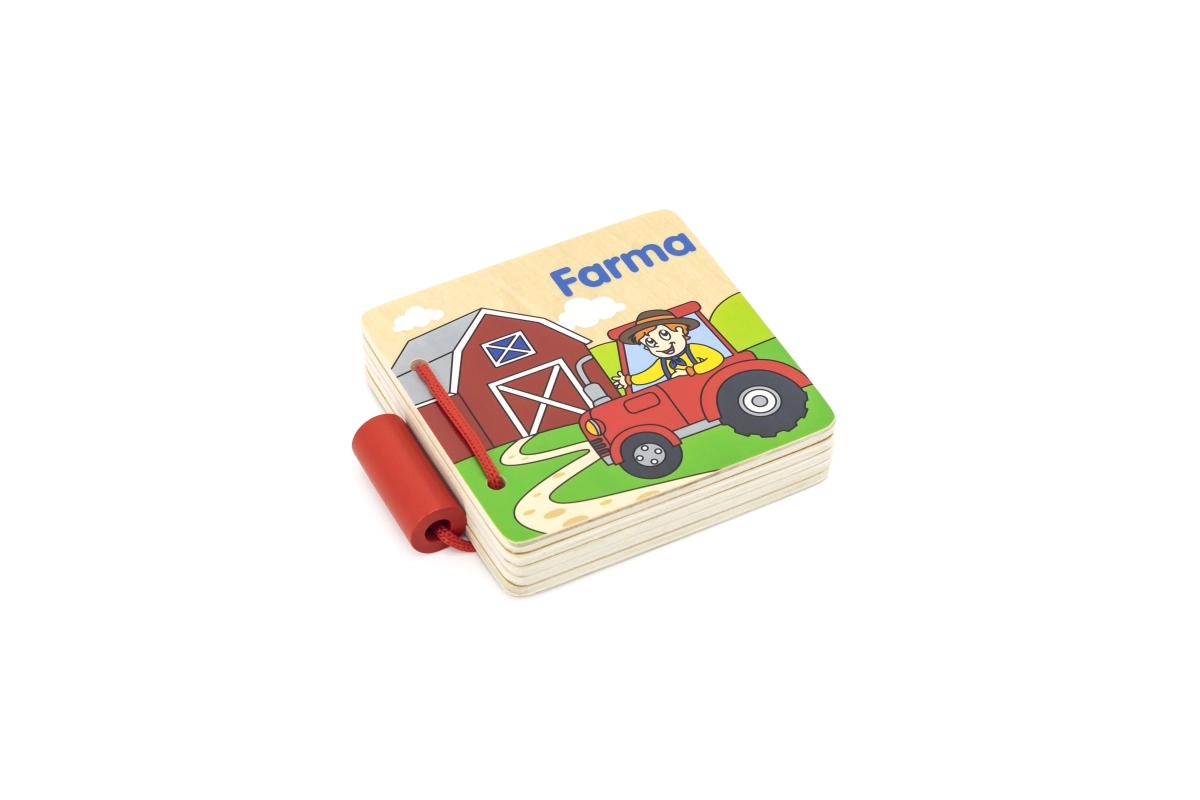 Ova drvena knjižica s motivom farme izvrstan je alat za prvo upoznavanje djece sa svijetom životinja. Izdržljive drvene stranice s jasnim ilustracijama i češkim natpisima pomažu razvijati finu motoriku, rječnik i koncentraciju.