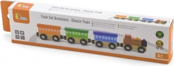 Drveni set Klasični vlak sadrži 4 dijela koji su spojeni magnetima. Ova igračka je dizajnirana od strane renomiranog proizvođača drvenih igračaka, tvrtke Viga Toys. Set se može koristiti kao samostalna igračka, ili kao dodatak drugim željezničkim prugama, konstrukcijama i setovima.