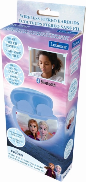 Dječje bežične slušalice s motivom FROZEN spajaju sigurnost, udobnost i stil. Zahvaljujući ograničenju glasnoće na 85 dB štite osjetljiv dječji sluh, podržavaju bežično povezivanje Bluetooth 5.1 te nude upravljanje dodirom, ugrađeni mikrofon i kompaktno kućište za punjenje za lako putovanje.
