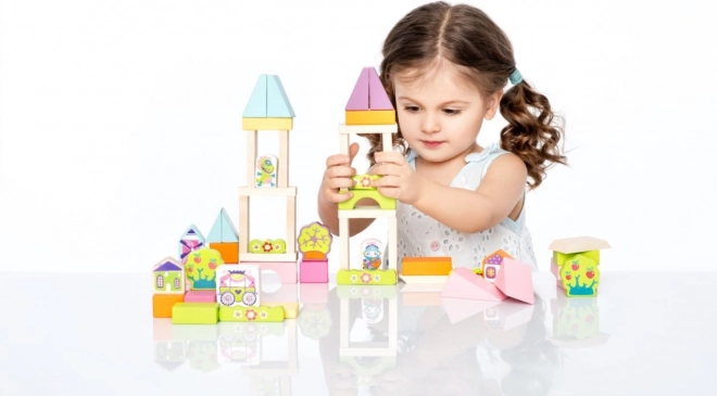 Drvena konstrukcijska igračka Bajkoviti grad idealan je izbor za djecu koja vole stvarati i maštati. Set sadrži 55 kocaka s kojima je moguće graditi kuće, mostove, dvorce i tornjeve. Igra s kockama razvija senzomotoričke sposobnosti, logičko razmišljanje i kreativnost.