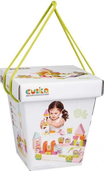 Kocke su izrađene od ekološki uzgojenog javora i bukve te obojene sigurnim bojama na bazi vode. Raznoliki oblici i boje potiču dječju maštu. Osim toga, sve je zapakirano u poklon-kutiju za jednostavno odlaganje nakon igre.