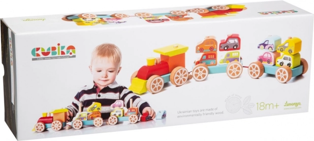 Drvena slagalica vlak s autima marke CUBIKA izrađena je od ekološkog drva i nudi 14 šarenih dijelova za sastavljanje. Odlična igračka za razvoj dječjih motoričkih vještina i kreativnosti.