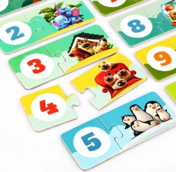 Otkrijte razigrano učenje s PUZZLIKA puzzlama koje djecu prate u prvim koracima u svijetu brojeva. Svaki par spaja ilustraciju grupe životinja s odgovarajućom znamenkom, što prirodno razvija brojanje od 1 do 10, vizualnu percepciju i povezivanje. Veliki i čvrsti dijelovi lako se hvataju i slažu.