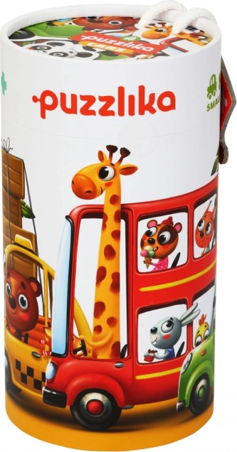 Dječje puzzle Puzzlika Auti donose razigrani način učenja. Svaka od 5 slika predstavlja različito vozilo sa životinjskim putnicima i ima 2 do 6 dijelova, pa je izvrsna za prvo slaganje. Dijelovi su veliki, čvrsti i ugodni za držanje – mališani tako sigurno vježbaju koordinaciju oko–ruka i strpljenje.