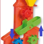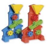 Ovaj izdržljivi mlin odličan je pratitelj na pješčaniku i uz vodu. Djeca mogu u široki lijevak s regulacijom sipati pijesak ili ulijevati vodu i promatrati kako tri šarena kotača oživljavaju i vrte se. Razdjelni žlijeb pomaže usmjeriti protok i potiče eksperimentiranje.