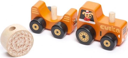 Cubika traktor s prikolicom – drvena magnetska slagalica, 3 dijela