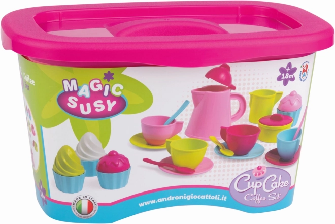 Stilski set za kavu brenda Androni pretvara svaku dječju kuhinju u mali kafić. Set sadrži sve za igru bariste – od vrča i šalica do preslatkih cupcakesa – i izrađen je od kvalitetnih, čvrstih i elastičnih plastika u Italiji. Zahvaljujući 24 dijela, praktičnom spremniku s poklopcem i sigurnoj izradi, idealan je za djecu od 18 mjeseci te i za dječje vrtiće.