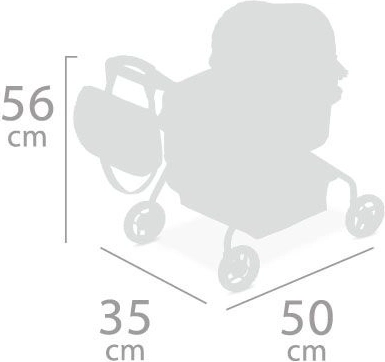 Dio seta je praktičan ruksak u istom dizajnu, pokrivalo gondole s rupicama za sigurno pričvršćivanje i prostran koš za dodatke. Kolica su prilagođena manjoj djeci – imaju visinu do ručke 56 cm i gondolu dimenzija 40 × 23 cm, kako bi svaka lutka udobno “odspavala”.