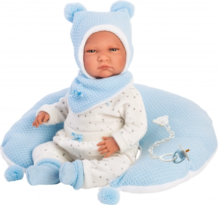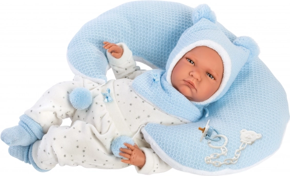 Priuštite svojoj lutki stil i udobnost s ovim 5‑dijelnim kompletom za lutke NEW BORN LLORENS 40–42 cm. Uključuje mekani jastuk za dojenje, skladno plavo‑bijelo izdanje i poklon‑pakiranje. Proizvedeno u Španjolskoj, prikladno od 3 godine.