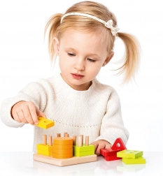 Stavljanje dijelova na kliniće trenira hvat, preciznost i koordinaciju oko–ruka. Idealno za male ručice i prve uspjehe u savladavanju jednostavnih zadataka.