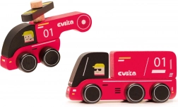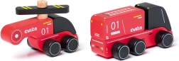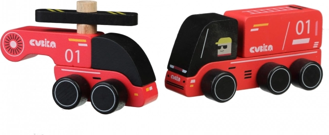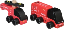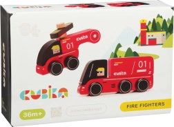 Priuštite djeci kreativnu igru s drvenim setom CUBIKA vatrogasci. Set čine vatrogasno vozilo i helikopter izrađeni od najkvalitetnijeg javorovog i bukovog drva, lakirani bojama na bazi vode bez mirisa. Zahvaljujući zaobljenim rubovima i pažljivoj izradi odlično leže i u malim ručicama te potiču senzomotoriku, logičko razmišljanje i kreativnost.