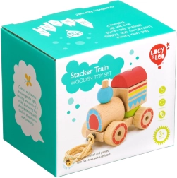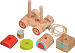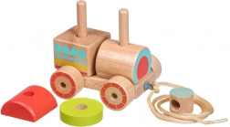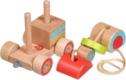 Drvena vučna lokomotiva spaja klasičan izgled i moderne obrazovne elemente. Djeca slažu šarene dijelove na prava mjesta, vježbaju hvat i otkrivaju osnovne oblike i boje. Nakon slaganja lokomotivu mogu jednostavno vući pomoću konopca i tako razvijati koordinaciju hoda.