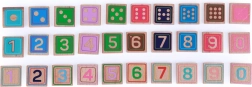 Znamenke 0–9, matematički znakovi, točkice kao na kockama i tematske kartice sa slikama podržavaju učenje kroz igru.