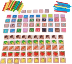 Ovaj kvalitetan drveni edukativni set pomaže djeci usvojiti osnove brojanja, uspoređivanja količina i jednostavne računske zadatke. Zahvaljujući živim bojama i ilustracijama, učenje je prirodno privlačno te potiče finu motoriku i koncentraciju.