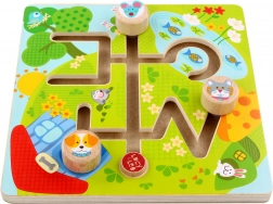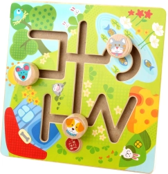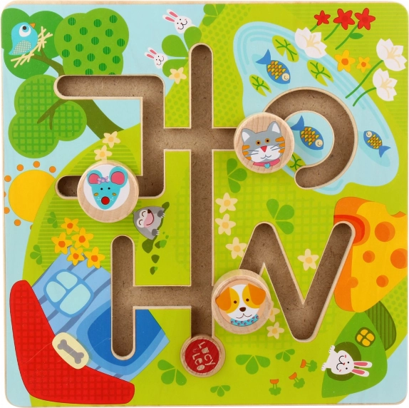 Drveni labirint Sunčana dolina donosi djeci radost otkrivanja i učenja. Ilustrirana ploča s ribnjakom i zelenilom uvlači djecu u igru u kojoj pas, mačka i miš putuju prema svojim ciljevima. Zahvaljujući glatkim utorima, figurice se lako pomiču pa je igra sigurna i intuitivna.