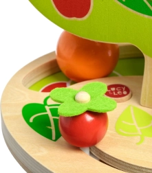 Dizajnerski atraktivan tobogan za kuglice u obliku stabla nudi nekoliko kaskadnih tračnica sa strane. Dovoljno je staviti jednu od glatkih, velikih drvenih kugli na vrh i promatrati kako se kotrlja prema dolje, proizvodi ritmično “klikanje” i zaustavlja se u podnožju stabla. Igračka je idealna za aktivnu djecu koja vole kretanje, zvukove i otkrivanje uzroka i posljedica.
