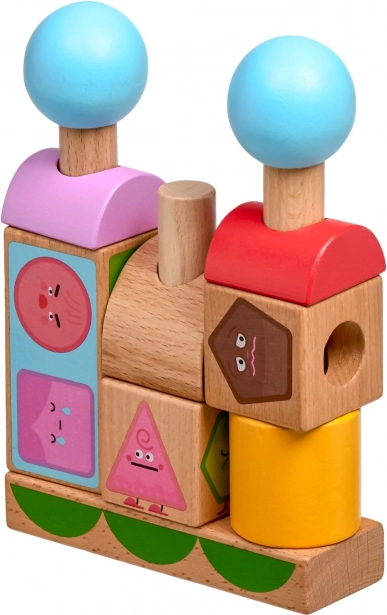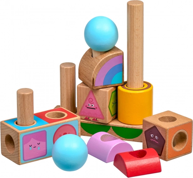 Drvena slagalica Oblici i emocije spaja razigrano učenje i zabavu. Djeca prema karticama slažu geometrijske oblike s veselim licima na ploču s klinovima, čime jačaju koordinacijske vještine, vizualnu percepciju i logiku. Kvalitetna drvena izrada i žive boje potiču pažnju i želju za stvaranjem.