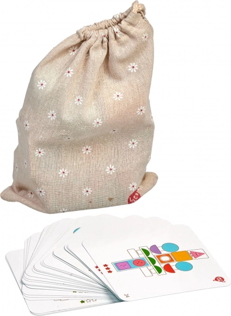 Set sadrži 24 kartice različite težine. Djeca vježbaju preciznost, planiranje koraka te vizualno razlikovanje oblika i boja.