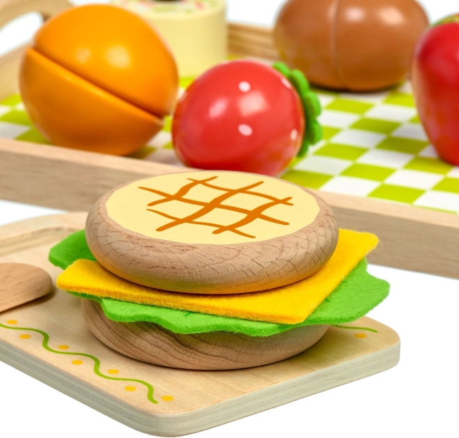 Čvrste drvene komponente upotpunjuju tekstilne ploške sira i salate. Izdržljiva izrada i žive boje osiguravaju dugotrajnu i sigurnu zabavu.