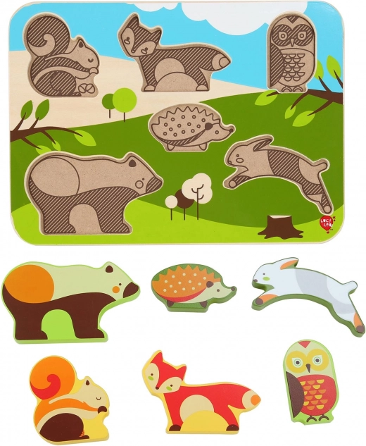 Umetajuća slagalica Lucy & Leo s motivom šumskih životinja nudi 7 šarenih drvenih dijelova bez ručkica koje djeca lako primaju i umeću na odgovarajuća mjesta. Svaki je dio dovoljno debeo da može samostalno stajati, što proširuje mogućnosti igre i mašte.