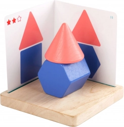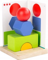 Robusna drvena baza s utorom čvrsto drži umetnutu karticu, tako da se dijete može usredotočiti na slaganje. Set je idealan za igru kod kuće i u vrtiću – razvija prostornu maštu, strpljenje i koncentraciju.