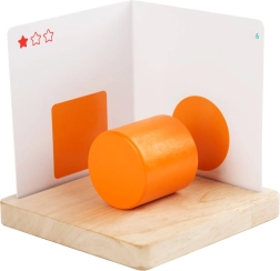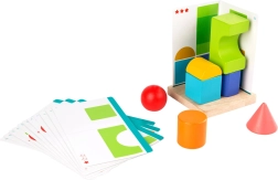 Ova drvena edukativna igračka pomaže djeci razumjeti osnovne geometrijske principe i poboljšava njihove sposobnosti rješavanja problema. Zahvaljujući obostranim karticama s uzorcima različite težine, djeca slažu šarene oblike na drvenu bazu tako da odgovaraju predlošku. Jednostavno pravilo – složiti prema šabloni – donosi mnogo smislené zabave.