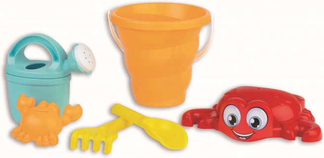 Predstavljamo 6-dijelni set za pijesak, koji će oživjeti svaku igru na plaži ili pješčaniku. Sastoji se od kantice u obliku školjke, sita s motivom veselog raka, kalupa u obliku raka, praktične zalijevke, lopatice i grabljica, što jamči sate kreativne zabave za vašu djecu.