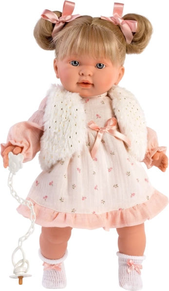 Stilski 4-dijelni komplet odjeće za lutku 42 cm marke LLORENS oduševit će nježnom ružičastom haljinicom, mekanim prslukom i gaćicama te vješalicom. Proizvedeno u Španjolskoj, idealno za svakodnevnu igru i svečane trenutke. Prikladno od 3 godine.