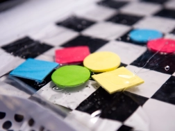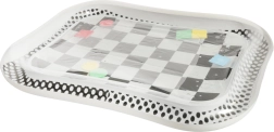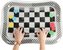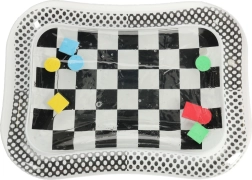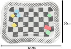 Otkrijte kontrastnu vodenu podlogu, koja ne samo da će privući pažnju vašeg djeteta, već također podržava njegov osjetilni i motorički razvoj. Ova podloga s crno-bijelim šahovskim motivom sadrži plutajuće šarene geometrijske oblike koji se pomiču na dodir djeteta.