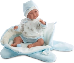 Priuštite svojoj lutki udobnu odjeću s ljupkim dizajnom. Ovaj 3-dijelni set sadrži obostrani flis kombinezon u obliku zvijezde i usklađene dodatke, koji zajedno stvaraju topao i ugodan outfit za svaku igru mame i bebe. Univerzalan kroj pristaje lutkama NEW BORN veličine 40–42 cm.
