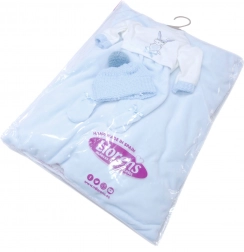 Odjeća za lutku iz kolekcije New Born je idealna za lutke veličine 35-36 cm. Ovaj slatki set odjeće uključuje 3 dijela i jastučić, koji se može koristiti kao podloga. Izrađeno u Španjolskoj i pakiranje uključuje plastičnu ili kartonsku vješalicu. Prikladno za djecu od 3 godine.