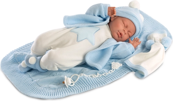 Ova prekrasna 4-dijelna garnitura uključuje španjolsku preciznost i kvalitetu koju nudi marka Llorens. Pogodna za lutke veličine 40-42 cm, dolazi s ukrasnim pokrivačem i mekom maramicom s pomponima. Odjeća je izvrstan dodatak za vaše lutke koje će izgledati stilski i moderno.