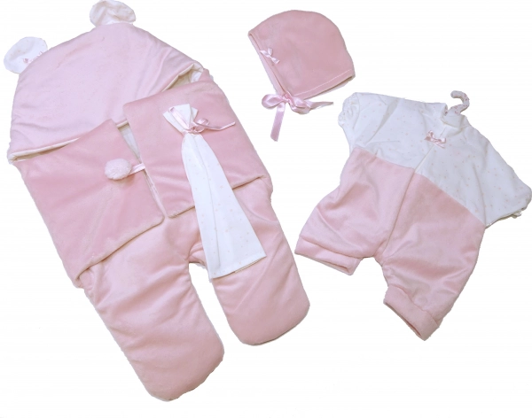 Ova prekrasna odjeća za lutke proizvedena je u Španjolskoj i uključuje dvodijelni set, idealan za lutke NEW BORN veličine 40-42 cm. Odijelo dolazi s baršunastom brzom maramom za autosjedalicu i ukrasnom maramicom, što lutkama daje realističan izgled.